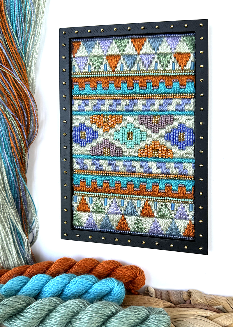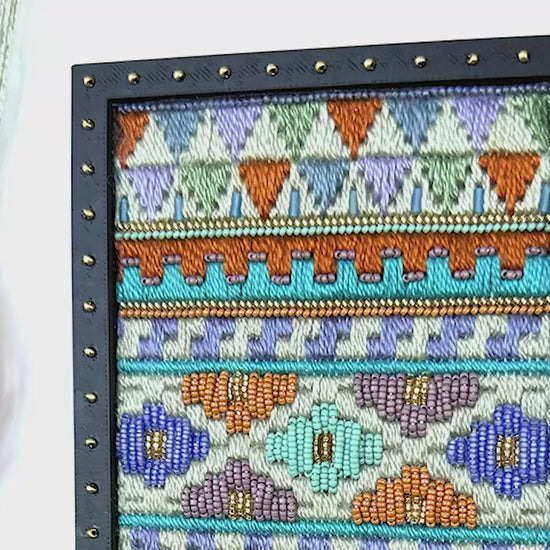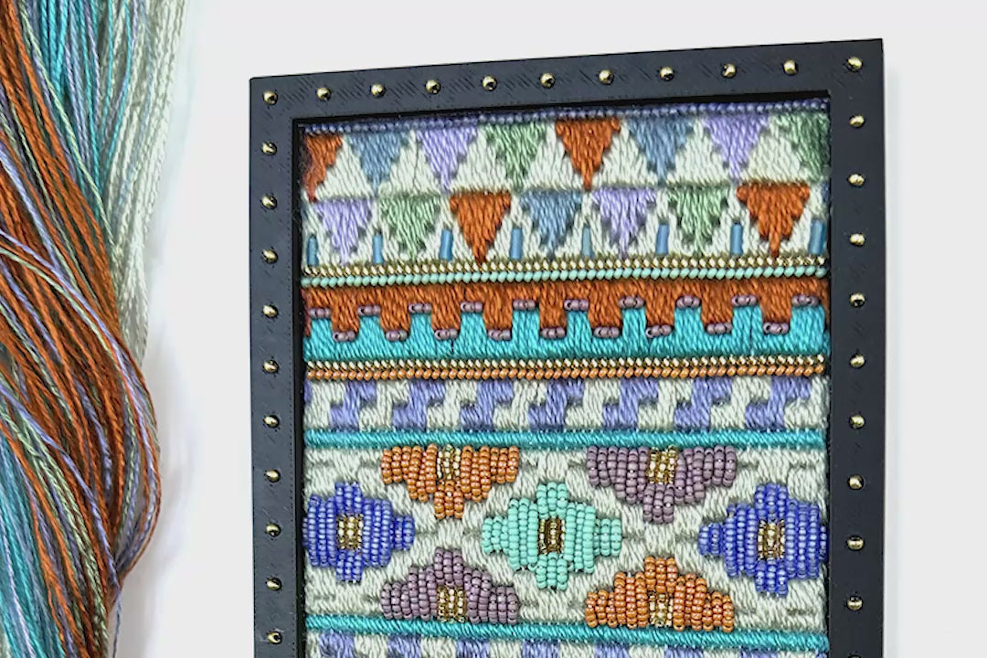 Frame included! Longstitch needlepoint with beaded motifs and decorations. The all-inclusive kit features tencel fiber (non-allergic cellulose based), Japanese and Czech seed and bugle beads, 18-mesh Zweigart needlepoint canvas with starting points marked, tapestry and beading needles, complete full-color directions for stitching and finishing. View our quick video for an overview of the project and helpful hints. Aleene's Jewel-It glue is recommended for finishing. Frame size 4" x 6".